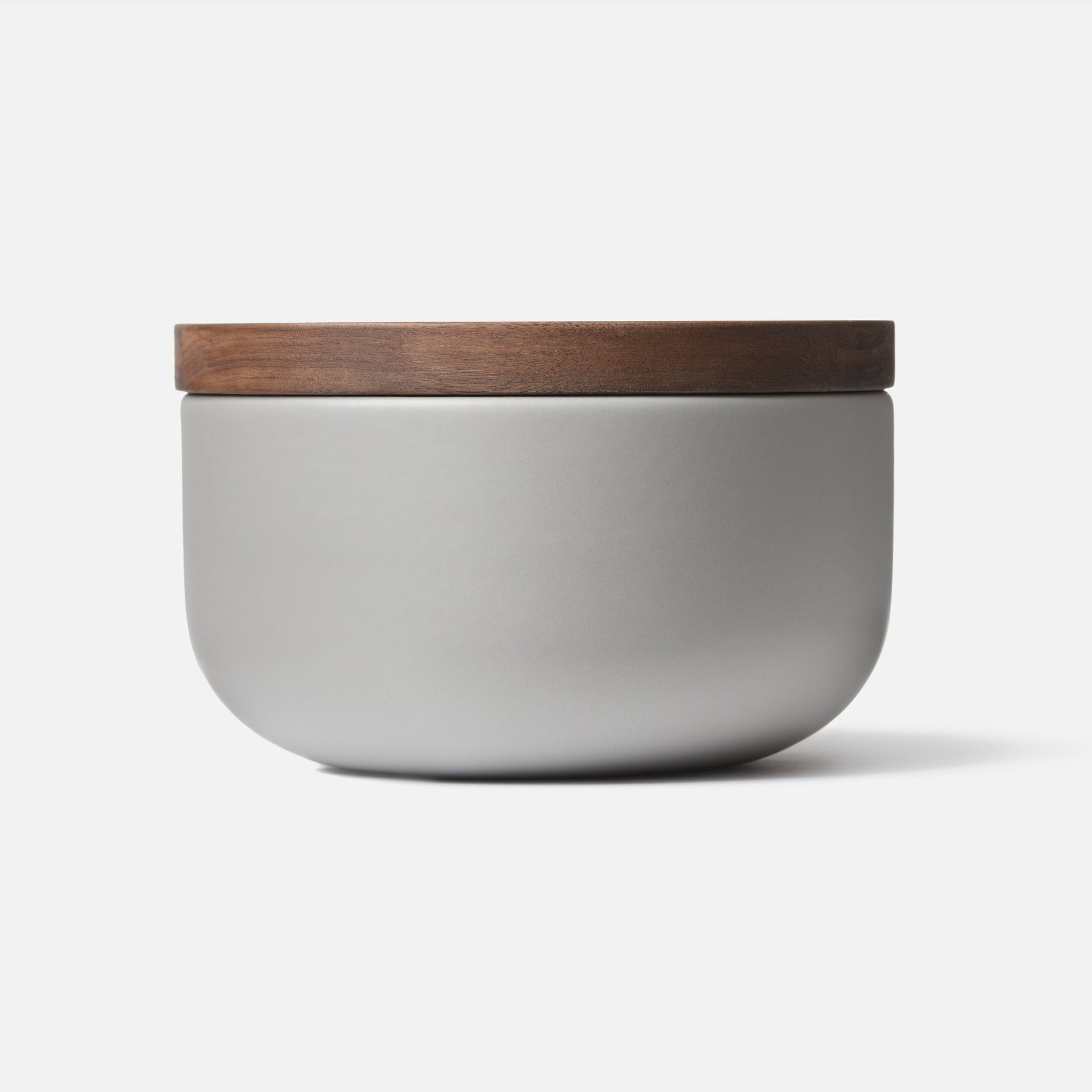 Gefäß aus lichtgrauer Keramik und geöltem Walnuss-Holz. Geeignet für die Aufbewahrung des Less Cleansing Clay. Die Schale wurde von dem belgischen Architekten Vincent van Duysen entworfen, der für seine klaren und sinnlichen Räume und die Verwendung natürlicher Materialien bekannt ist. Der Less Container wird in Belgien mit dem höchsten Anspruch an Qualität und Handwerk hergestellt.